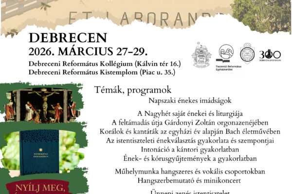 A Magyar Református Egyház Zsinati Hivatala Országos Egyházzenei Igazgatóság és a Tiszántúli Református Egyházkerület Zeneigazgatósága 2026. március 27-29. között...